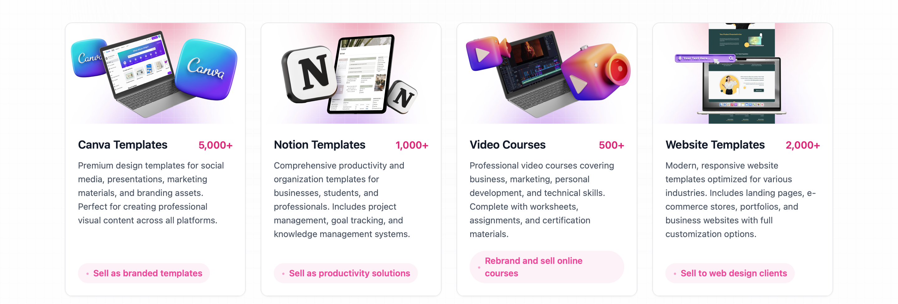 Quality digital products you can customize and sell. Start with proven content and make it your own.